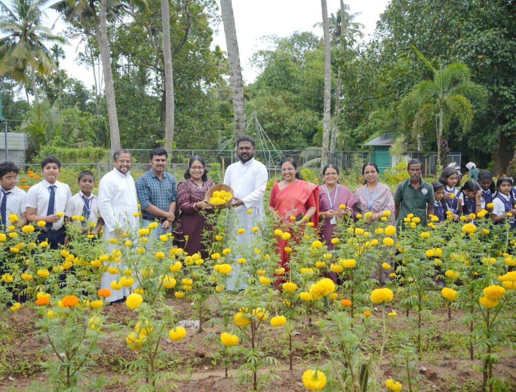 Chavara Darsan CMI Public School in Koonammavu celebrated its fourth consecutive year of flower cultivation harvest. Led by the school’s Nature and Environmental Club Harithadarsan, supported by the Kottuvally Panchayat and the Agricultural Office, the school conducted this annual Marigold harvest in connection with the Onam festival.