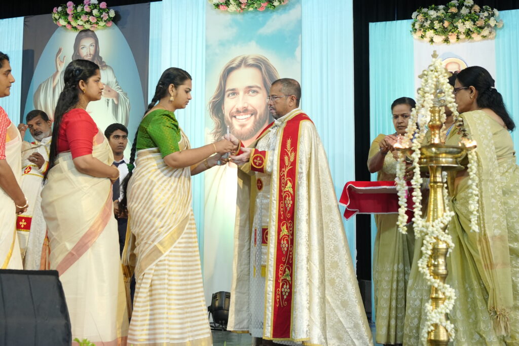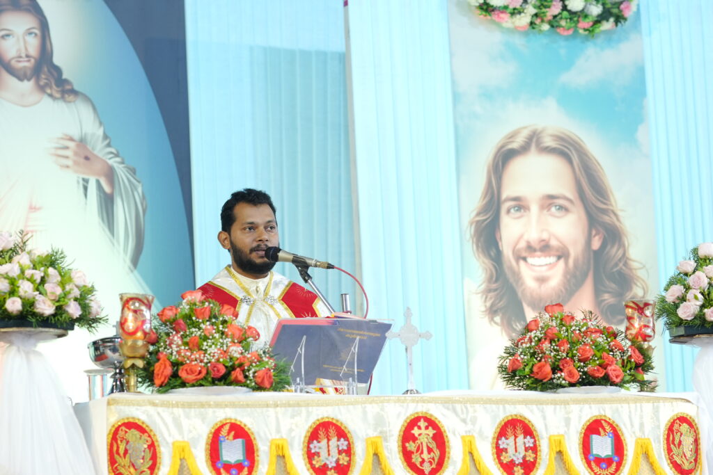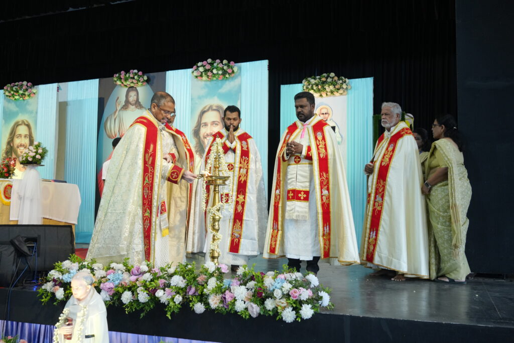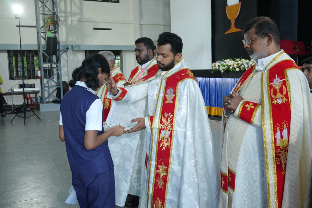 The Holy Mass was led by the newly ordained priest and one of our former students, Rev. Fr. Dezlin Paulson S.J., along with Rev. Fr. Martin Mundadan CMI, Principal and Manager; Rev. Fr. Mejit Vattoly CMI, Vice Principal; and Fr. Joby Kozhikottu CMI, Administrator.