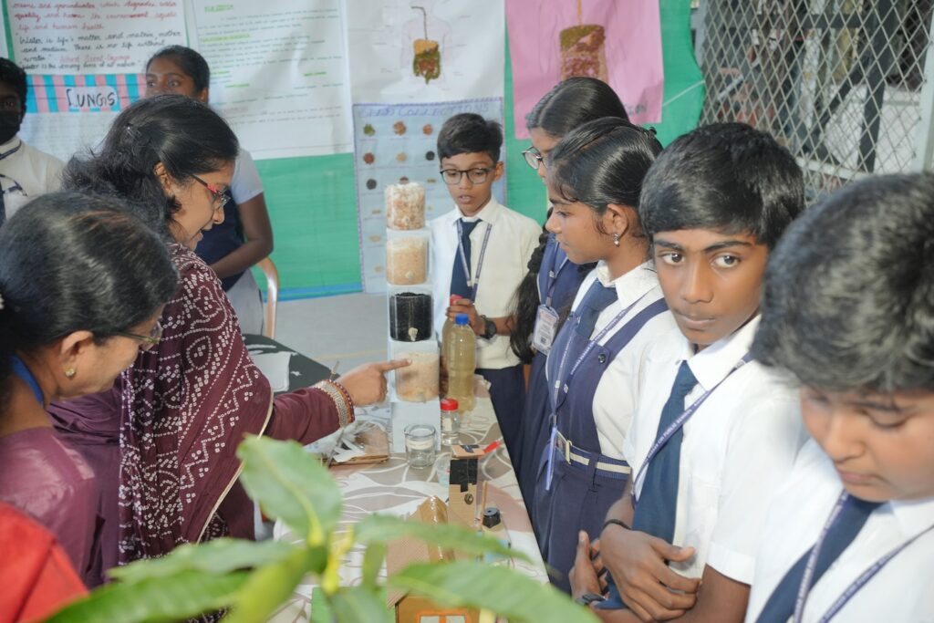 The student exhibition showcased a variety of projects, with notable highlights including a statue of Mahatma Gandhi and a volcano model that attracted considerable attention. The event also featured experiments such as the Elephant Toothpaste Experiment, the Fake by Blood Experiment, and a clay model of Mundakkai village illustrating the landscape before and after a landslide were the main attractions of the exhibition.